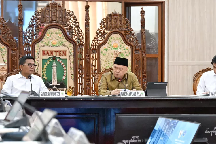 SERANG, Dejabar.id – Gubenur Provinsi Banten Andra Soni melakukan rapat koordinasi persiapan angkutan lebaran tahun 2025 bersama Menteri Perhubungan RI Dudy Purwaghandi di Pendopo Gubernur Banten, KP3B, Curug, Kota Serang, Rabu, 5 Maret 2025.