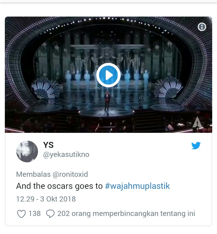 Berbagai meme muncul dengan ribuan tagar #WajahmuPlastik, dan sejumlah di antaranya dengan unggahan yang menyebutkan “penghargaan Piala Oscar” diberikan kepada…