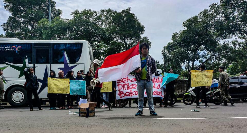 Tuntutan mahasiswa disampaikan dalam aksi unjukrasa yang berlangsung, Kamis (27/2/2020), di depan perkantoran Pemerintahan Kota Bekasi, Jl. Ahmad Yani No. 1 Bekasi Selatan.